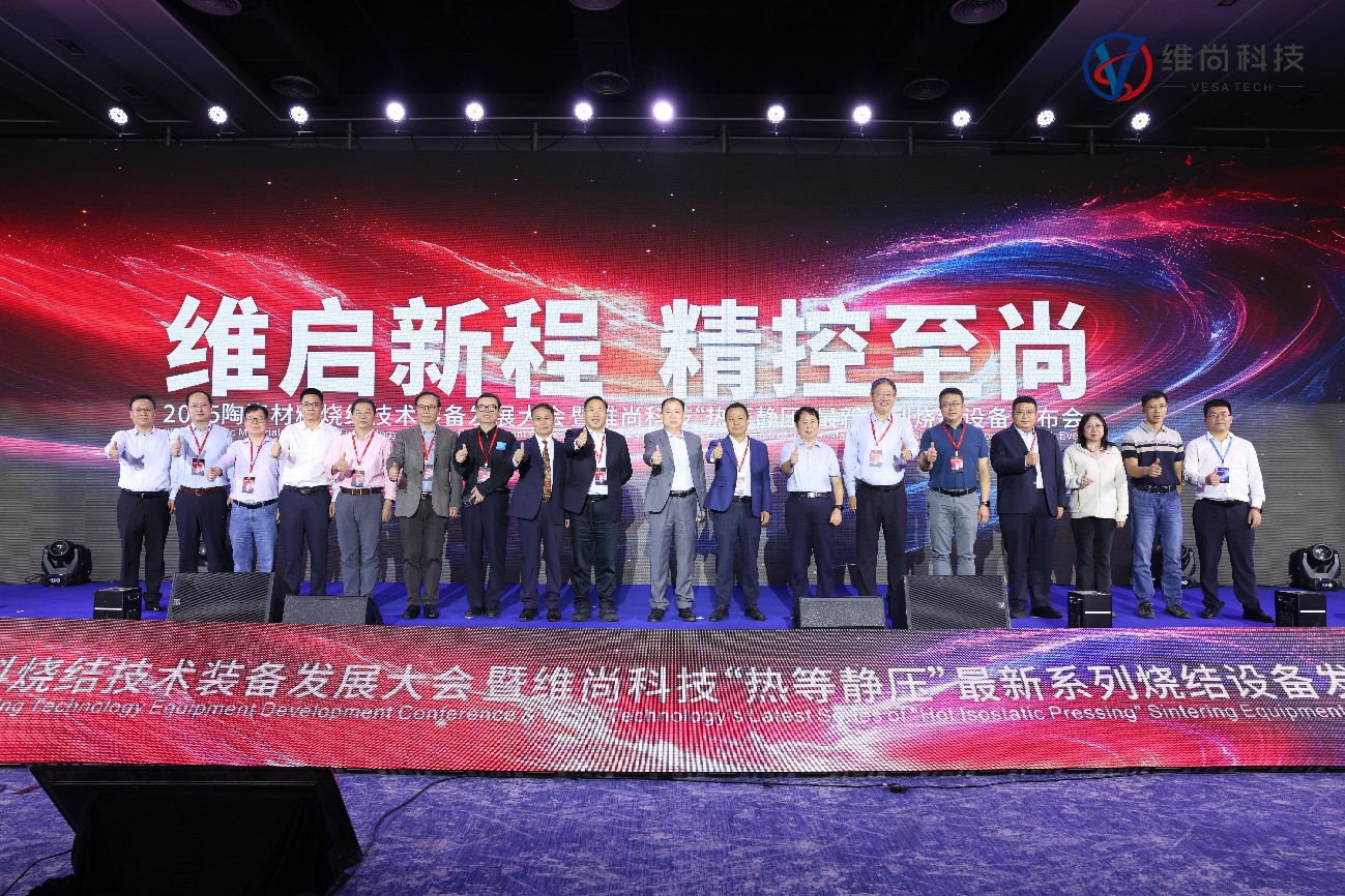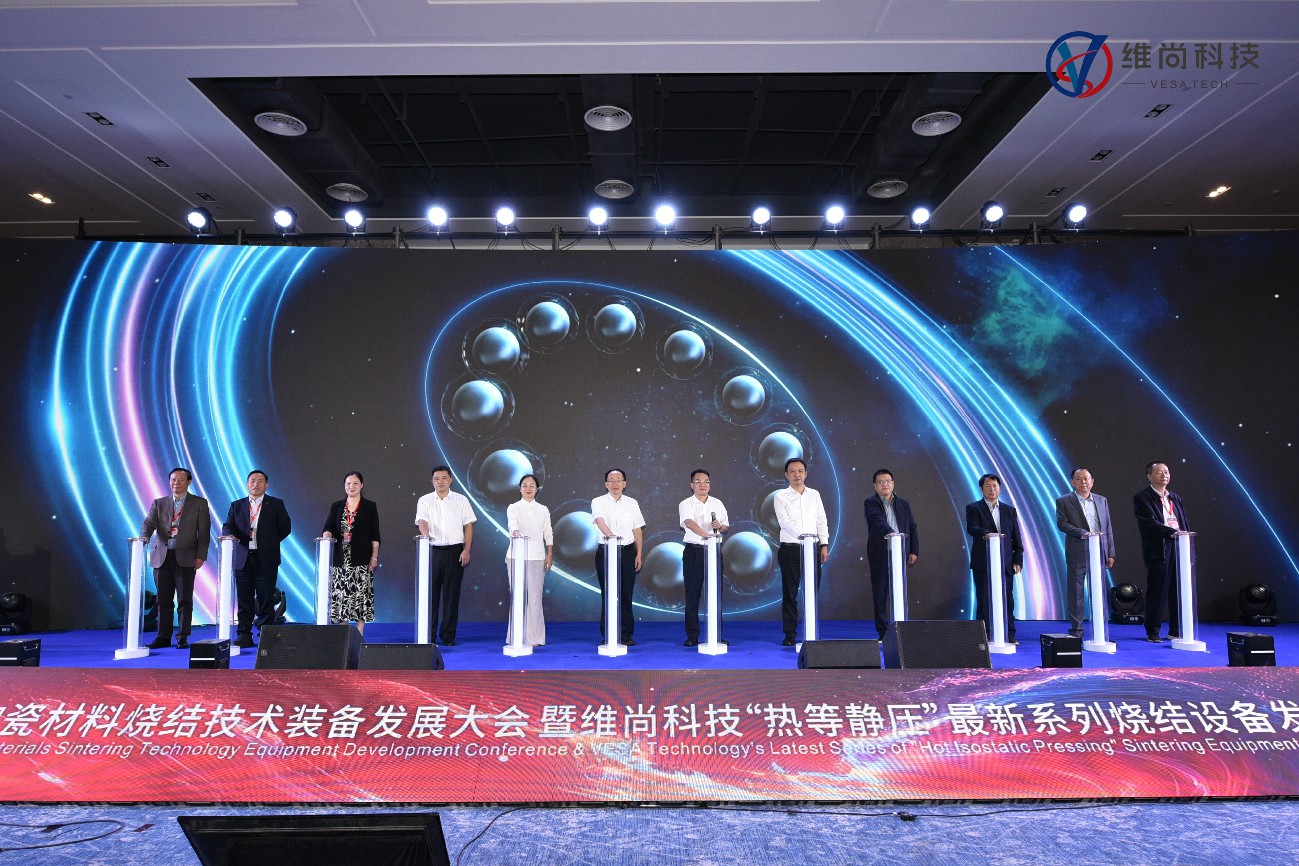 隨后,高光時刻來臨!株洲市委常委、市委秘書長楊英杰攜市、區(qū)級相關(guān)領(lǐng)導(dǎo),行業(yè)協(xié)會負(fù)責(zé)人與柴神洲董事長共同推桿 —— 隨著啟動裝置緩緩點亮,本次盛會正式啟幕,維尚科技 “熱等靜壓” 新品也同步揭開面紗!這一時刻,不僅是維尚發(fā)展的新起點,更標(biāo)志著國產(chǎn)先進(jìn)陶瓷裝備邁向更高質(zhì)量的發(fā)展階段!